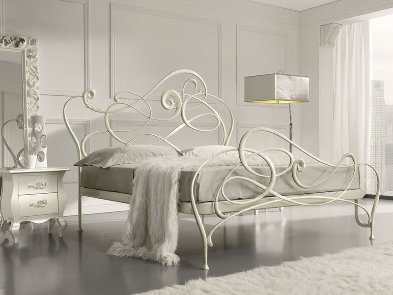 Le lit et certains éléments du casque peuvent être en métal. La tête de lit et les pieds forgés sont magnifiques et légers. Les meubles peuvent également avoir des surfaces chromées et des garnitures métalliques.