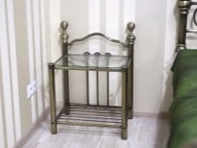 Les tables de chevet sont un meuble et une décoration d'intérieur indispensables dans la chambre à coucher. Les tables de chevet forgées sont particulièrement élégantes : elles combinent aspect original, « légèreté » et fiabilité. De tels meubles deviendront un endroit supplémentaire pour ranger diverses petites choses : des livres, un téléphone, des cadres avec des photos et d'autres choses.