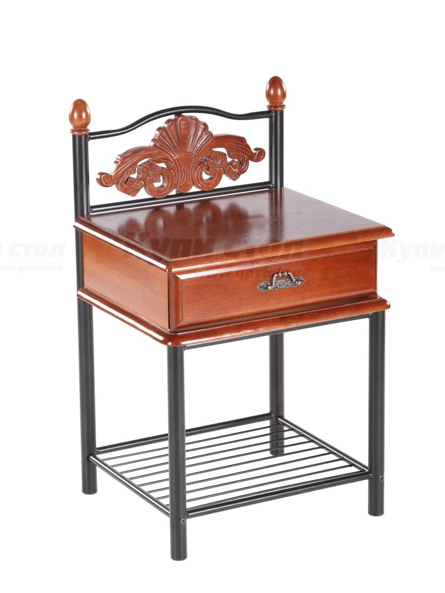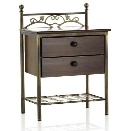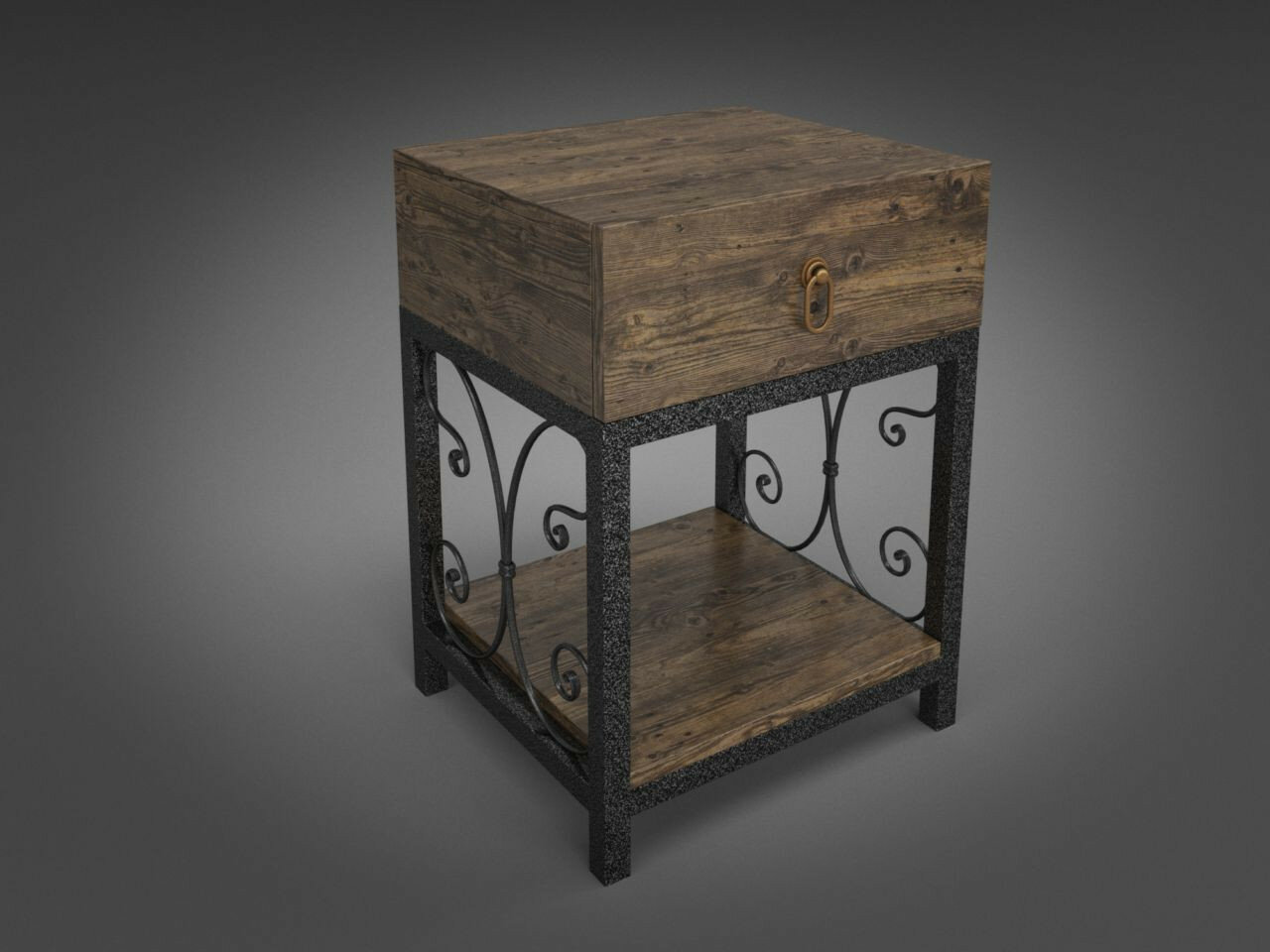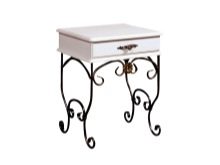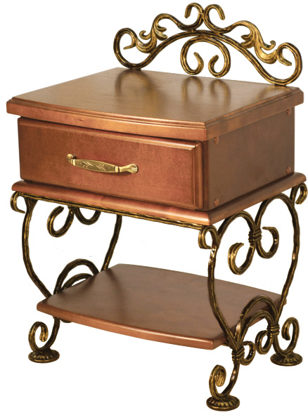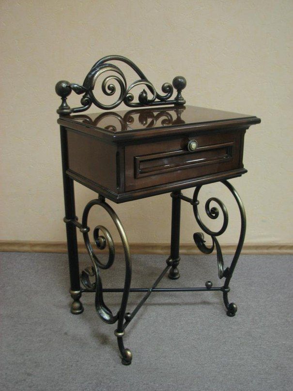 - Calcul. La pierre artificielle et la pierre naturelle sont utilisées dans la production du plateau de la table de chevet. Il s'harmonise bien avec les parties en métal forgé du meuble. La plupart des fabricants préfèrent le marbre, le granit, le travertin. Une armoire en fer forgé avec un comptoir en pierre durera plus d'une décennie, mais peu de gens choisissent de tels meubles en raison de leur poids important.