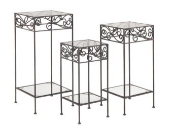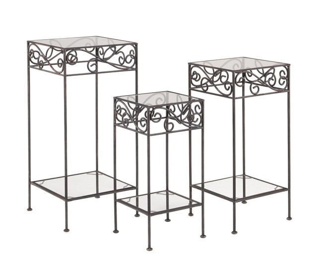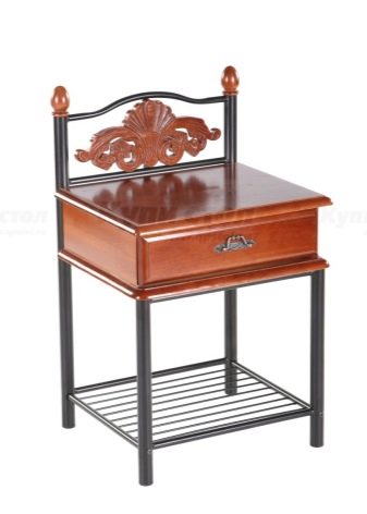 Le forgeage du métal fonctionne bien avec ces matériaux. La plupart des modèles de socles sont de forme carrée ou rectangulaire. Un tel meuble est pratique: il s'intégrera dans n'importe quel style d'intérieur, il peut être placé dans un coin ou près d'un mur.