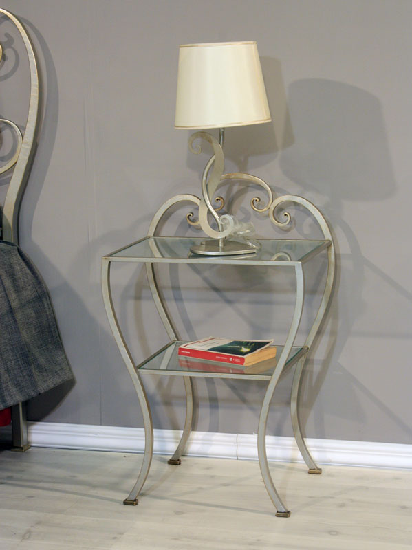 Les tables de chevet forgées comprennent le corps et les pièces forgées (par exemple, les côtés, la paroi arrière, les étagères et d'autres articles). Les pièces forgées sont réalisées dans des formes simples ou complexes avec toutes sortes de motifs et de courbures : elles peuvent être arrondies, spiralées, tissées, sinusoïdales. Différents types d'acier, de fer, de titane, de métaux non ferreux sont utilisés pour la fabrication d'éléments forgés. Ils diffèrent par leur apparence, leur force et d'autres paramètres. Les métaux mous sont le plus souvent pressés sans chauffage et le forgeage à chaud est indispensable pour le traitement des matériaux durs.