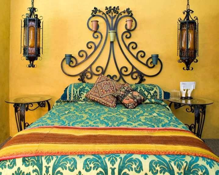 Nous avons rassemblé plusieurs photos pour nous familiariser avec les types de socles en fer forgé et leur emplacement réussi dans la chambre.