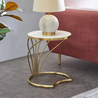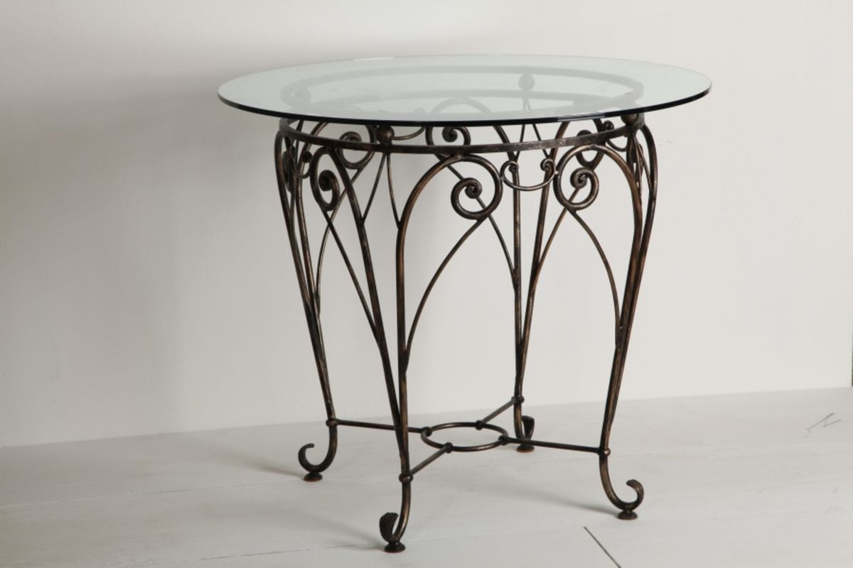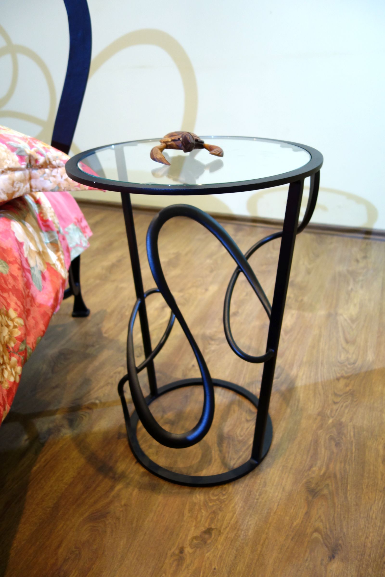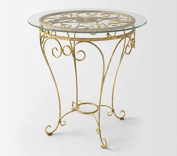 L'un des éléments essentiels d'une table de chevet en fer forgé est partie inférieure massive. Il est forgé, équilibre le dessus plus léger et donne de la stabilité à l'ensemble de la structure.