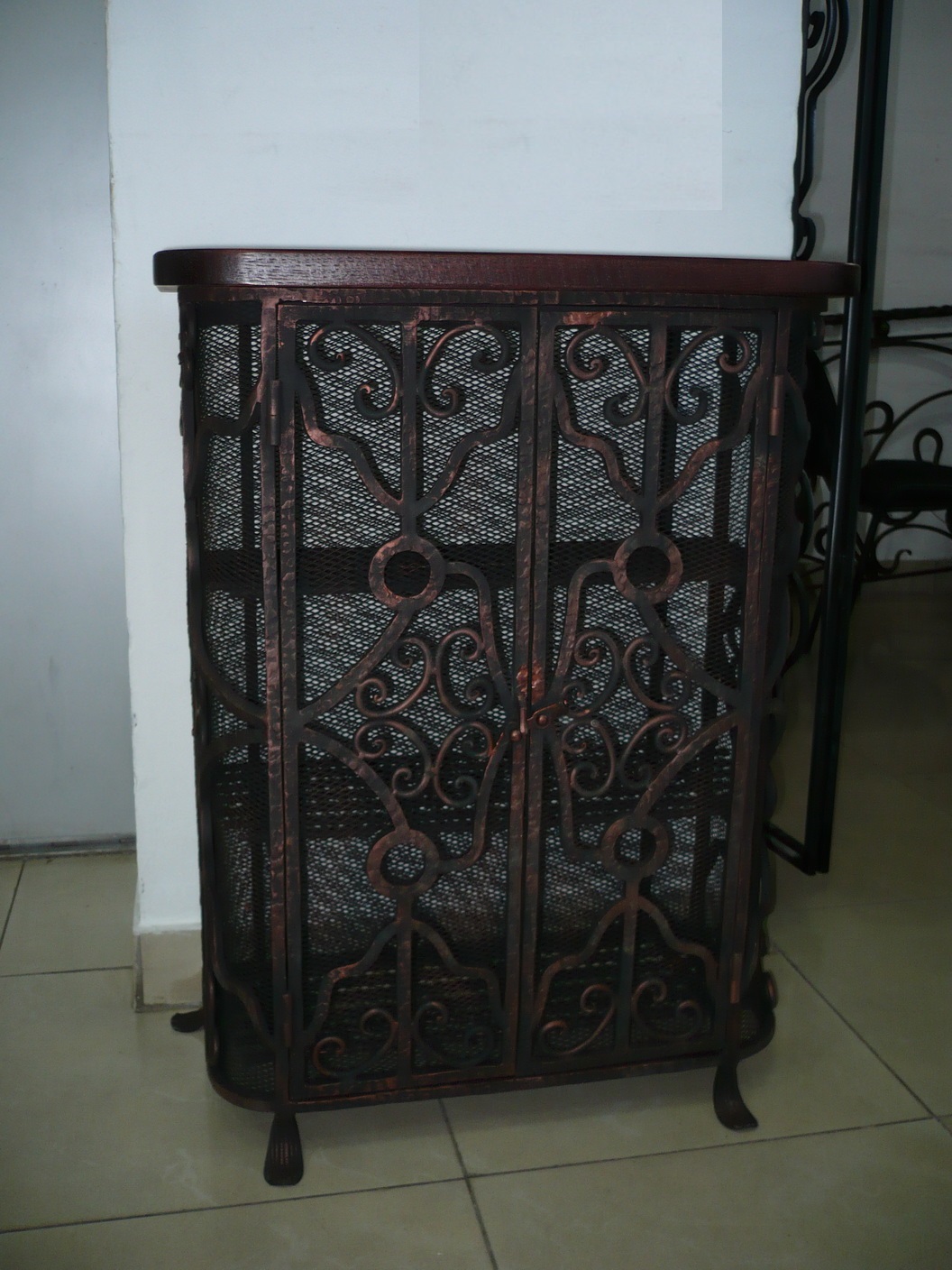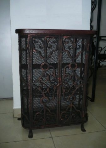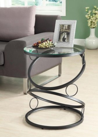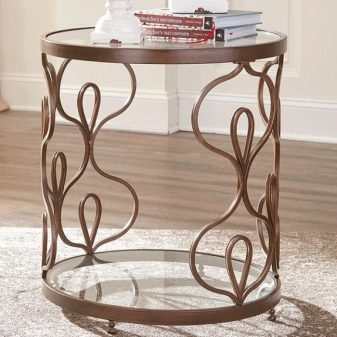 - Avec portes battantes et corps fermé. Ces tables ressemblent plus à des guéridons ordinaires qu'à d'autres, mais elles peuvent avoir des parois latérales forgées translucides, ce qui leur donne de la légèreté.