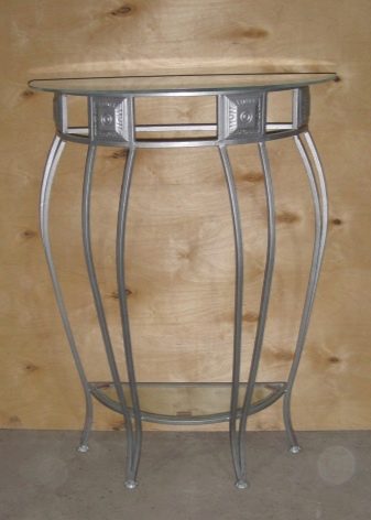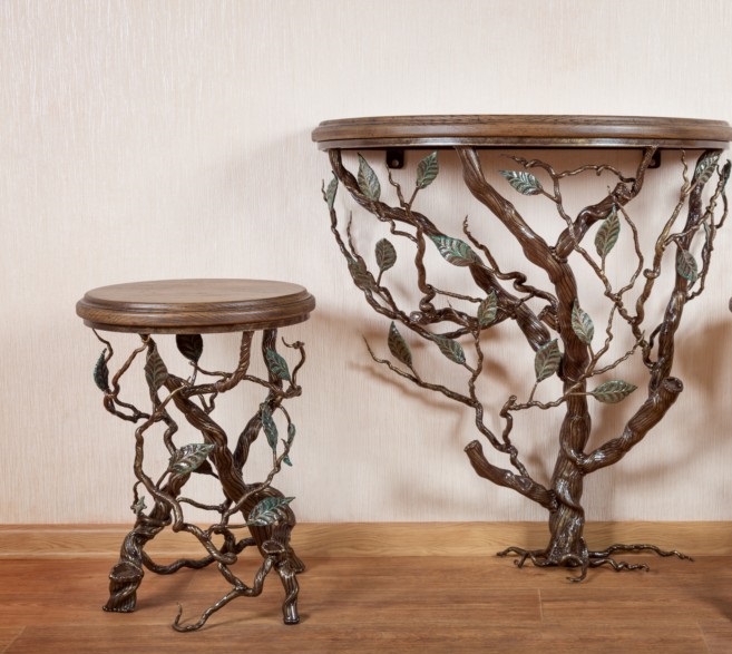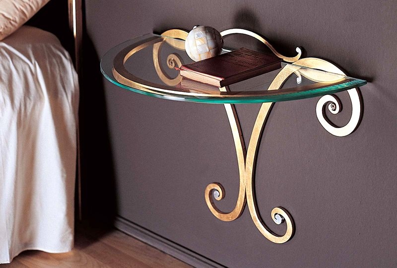 La table de chevet est beaucoup plus pratique que la margelle, et les éléments forgés lui confèrent une grâce particulière, une légèreté, que les meubles ordinaires n'ont pas. Les designers modernes utilisent cette propriété pour créer de véritables chefs-d'œuvre de produits d'ameublement. Les éléments métalliques sont utilisés dans la construction du cadre, du cadre ou du support, ils peuvent également être utilisés pour décorer et décorer des produits en bois massif. De tels tableaux bien en harmonie avec l'esthétique des styles art déco, hi-tech, classique et avant-gardiste.