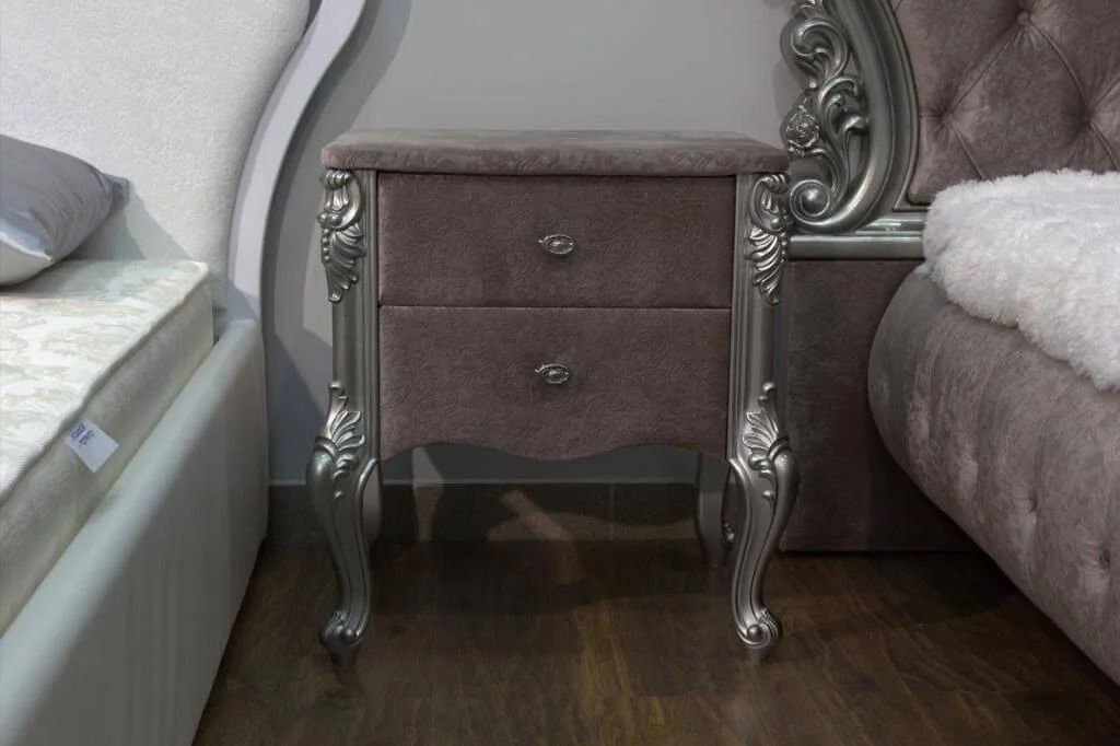 - Avec un plan de travail fait d'un matériau différent. Il est généralement en verre ou en pierre. De telles tables de chevet peuvent avoir une deuxième étagère lumineuse à l'intérieur, mais le plus souvent elles remplacent la version service ou café des meubles de la chambre.