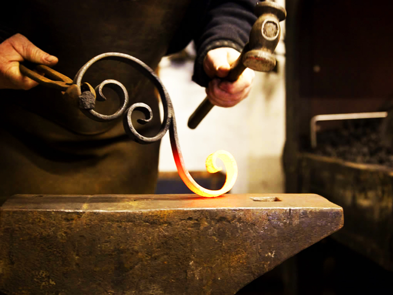 - Autoroute... Dans ce cas, tous les travaux sont effectués exclusivement à la main. La pièce métallique est serrée dans un étau, placée sur une enclume, traitée avec un marteau. Le forgeage libre est utilisé dans la fabrication de produits pour un projet exclusif, vous permet d'obtenir des objets d'intérieur de haute valeur artistique.