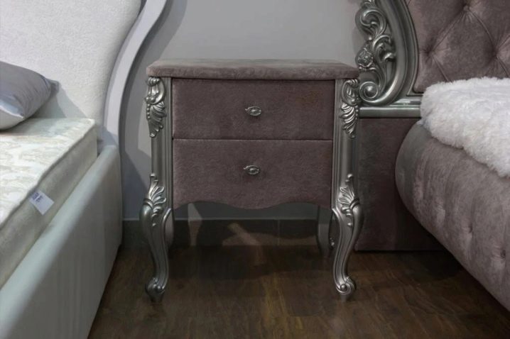 Avec tiroirs. Ces modèles ressemblent extérieurement à une secrétaire, ont un boîtier massif et plusieurs blocs du système de stockage. Pratique pour placer des lunettes et autres petites choses, des accessoires de couchage.