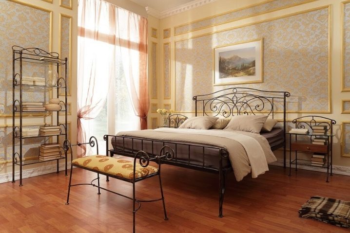 Selon l'option de conception choisie, les meubles de chevet avec éléments forgés peuvent contenir des pièces d'autres matériaux.