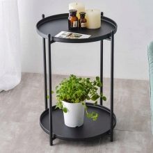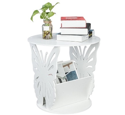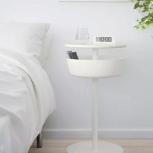 - Plastique. L'option la plus économique est les tables rondes en plastique près du lit.Et le plus pratique : ils sont légers et ne nécessitent pas d'entretien. Mais ils sont complètement fragiles, leur durée de vie est plutôt courte.