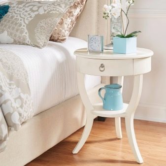 La table de chevet ronde a une longue histoire. Et aujourd'hui, de tels modèles séduiront les amateurs de solutions intérieures originales. Mais la table de chevet ronde n'est pas seulement originale. Ce modèle n'a pas de coins pointus, il est donc sûr à utiliser, surtout dans une maison avec de jeunes enfants. La forme inhabituelle attirera l'attention, faisant ainsi du produit le centre de la composition intérieure de la chambre.