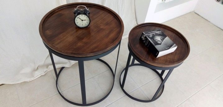 Les tables rondes forgées et en métal s'intégreront parfaitement dans le loft, qui sont souvent combinés avec du bois, du verre.