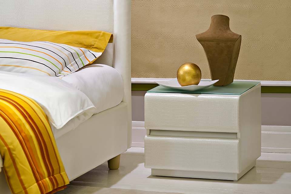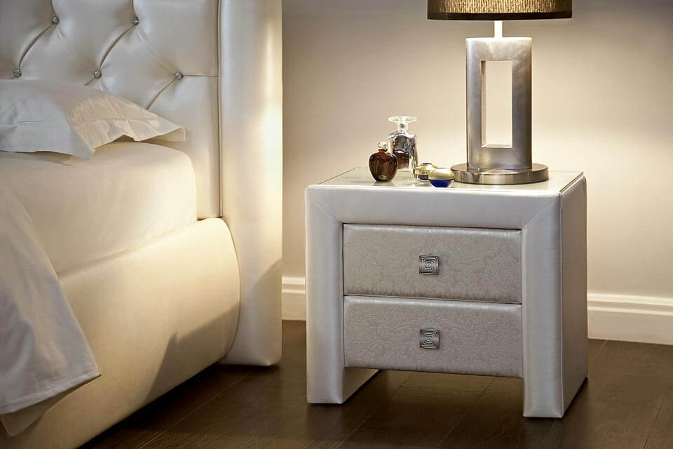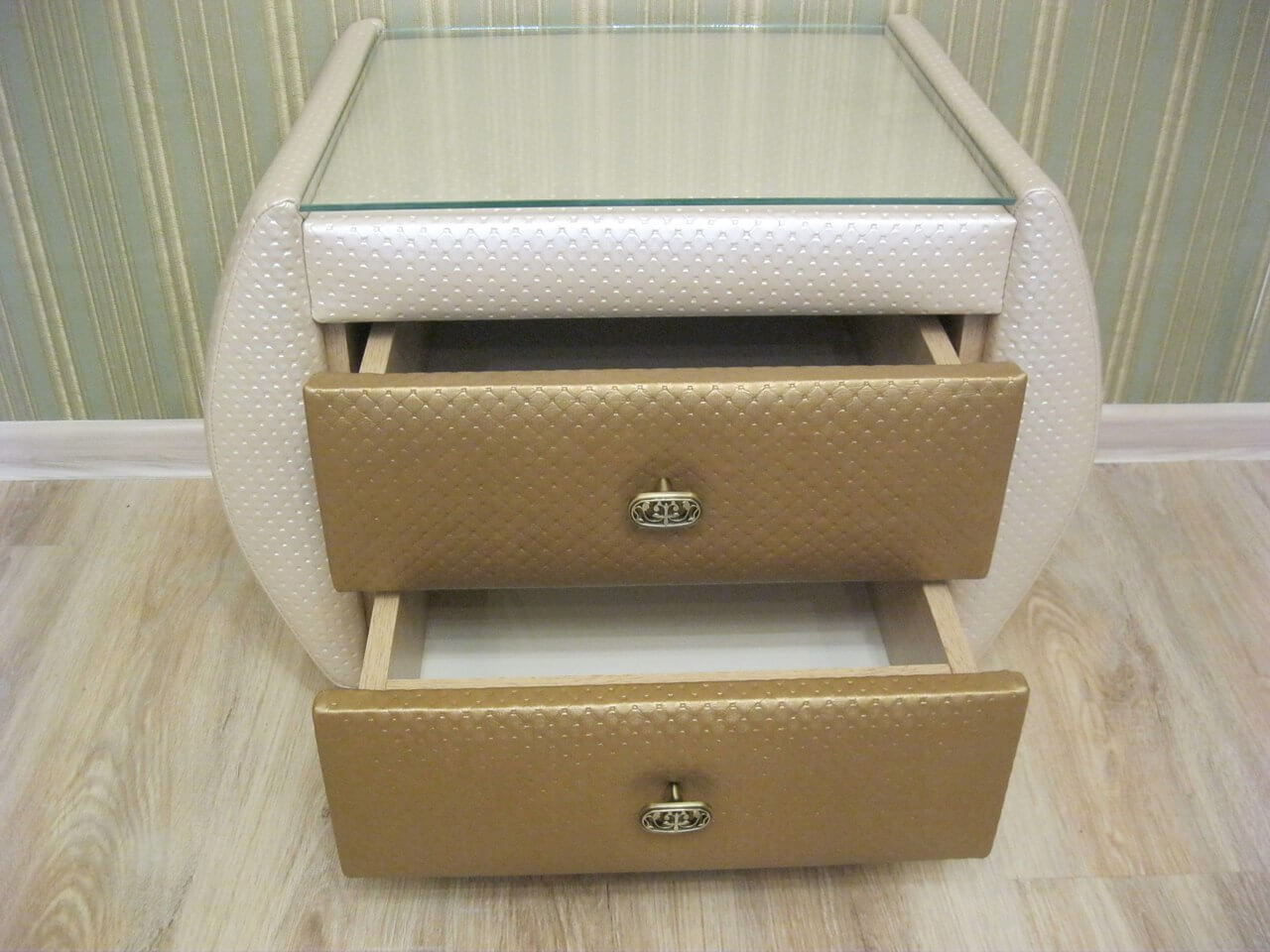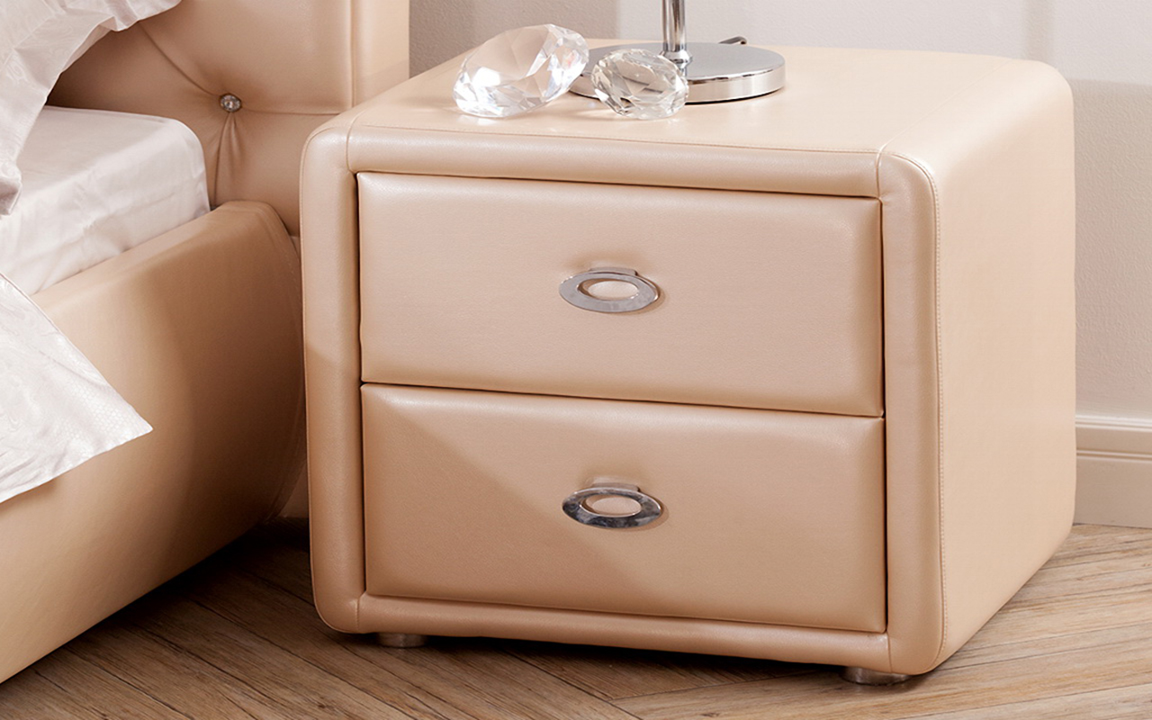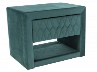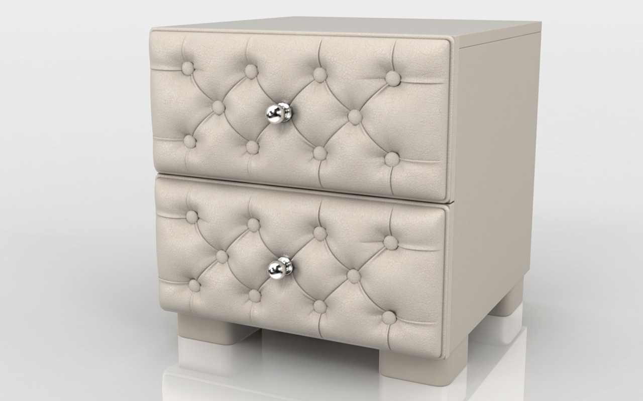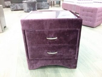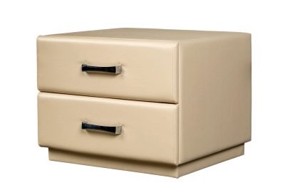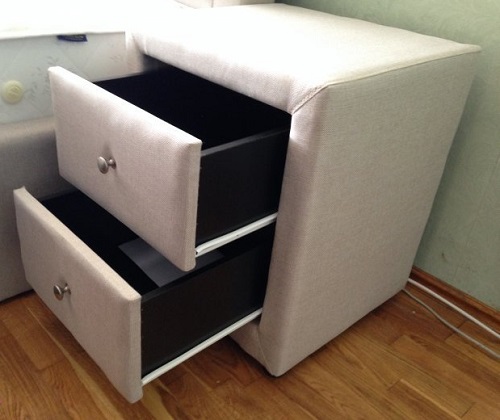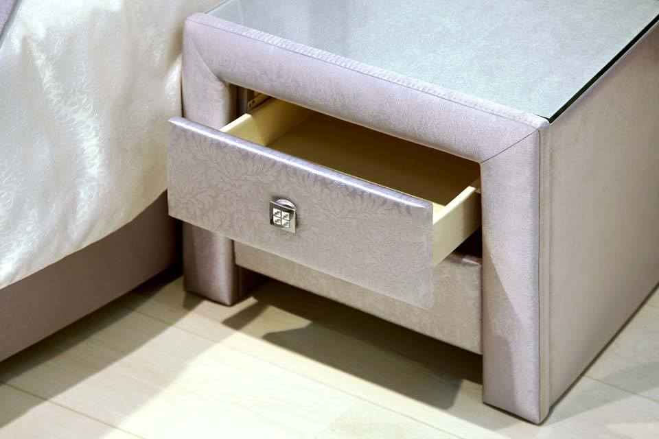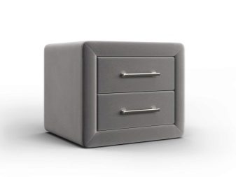 Tables de chevet moelleuses - meubles d'armoire avec revêtement et rembourrage en textile, fourrure ou cuir... Selon la conception, le rembourrage peut n'être que partiel. Par exemple, il peut s'agir de façades de tiroirs souples, de côtés ou d'une partie de cadre. Les matières premières d'ameublement et le remplissage de meubles sont conformes aux exigences de sécurité environnementale.