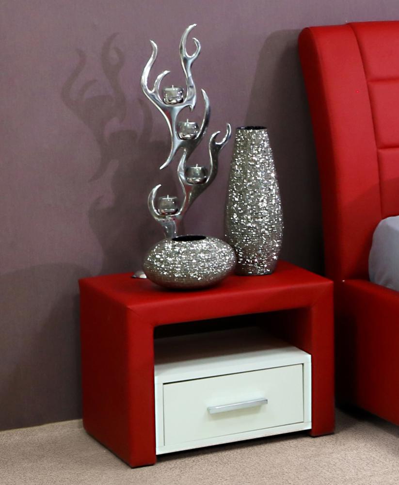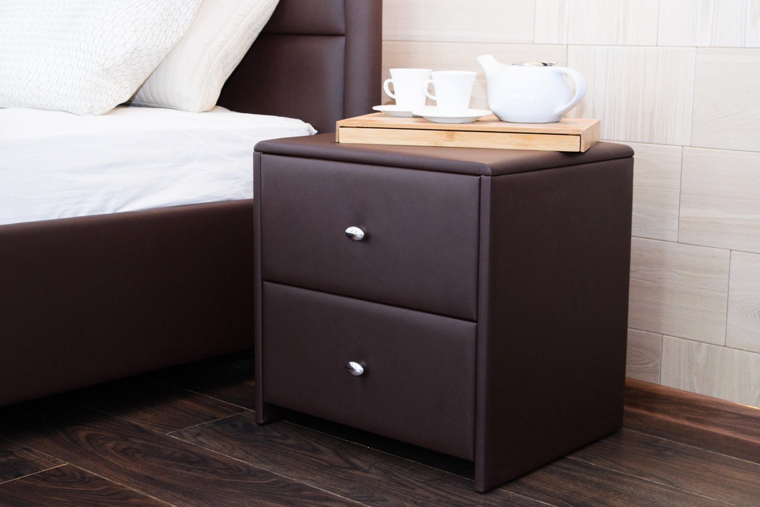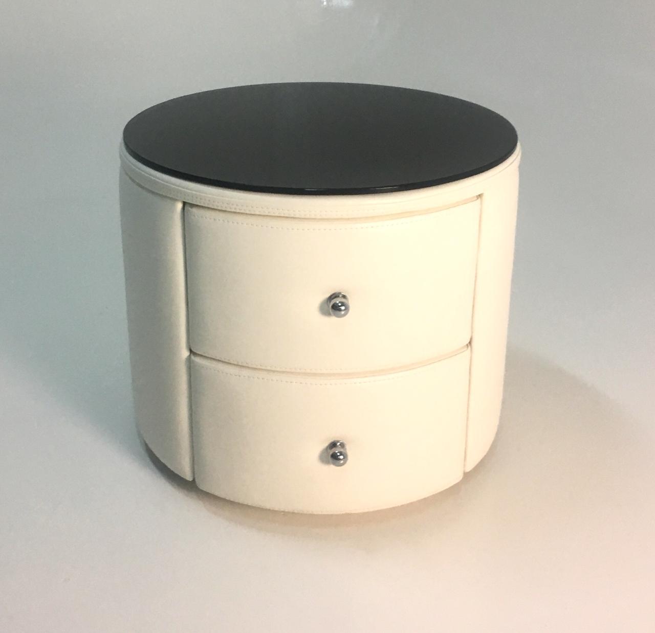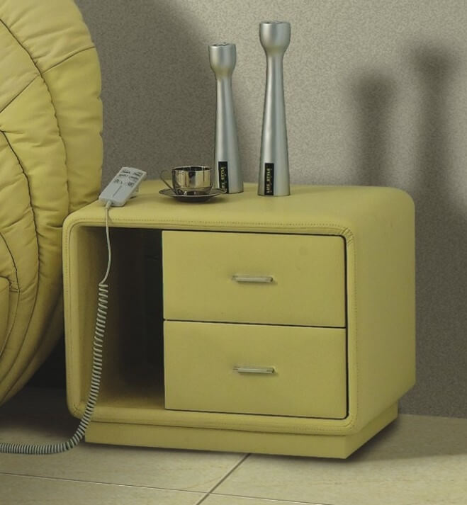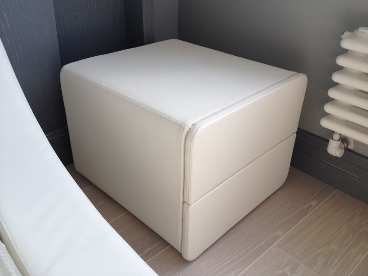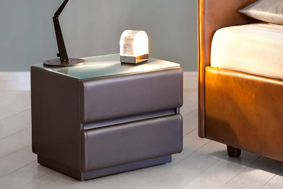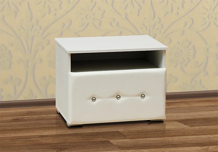 Tables de chevet moelleuses - meubles d'armoire avec revêtement et rembourrage en textile, fourrure ou cuir... Selon la conception, le rembourrage peut n'être que partiel. Par exemple, il peut s'agir de façades de tiroirs souples, de côtés ou d'une partie de cadre. Les matières premières d'ameublement et le remplissage de meubles sont conformes aux exigences de sécurité environnementale.
