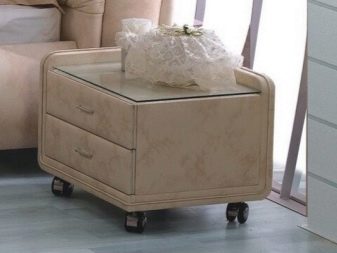La conception du produit dépend de sa destination. Si vous avez besoin d'une table de chevet pour une lampe de bureau, un téléphone ou des lunettes, l'option simple vaut la peine d'être achetée. Il peut s'agir d'une petite armoire avec un tiroir ou d'une étagère.