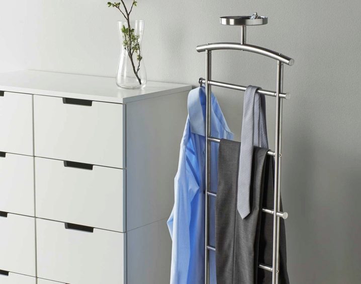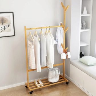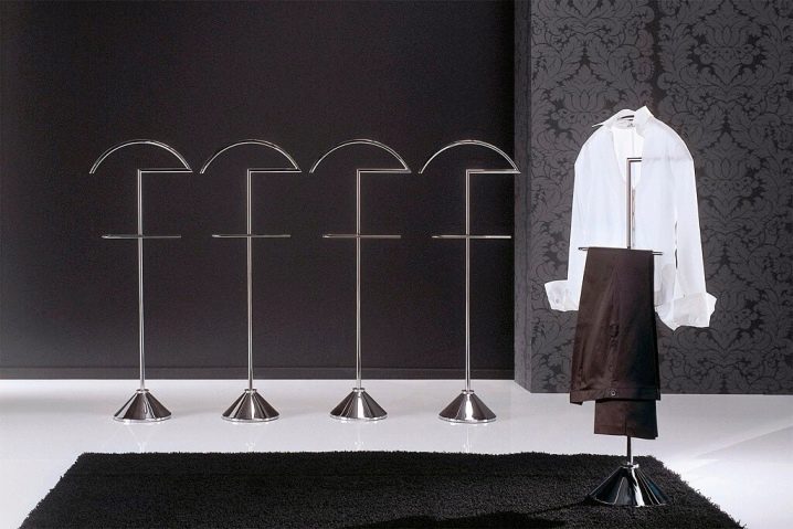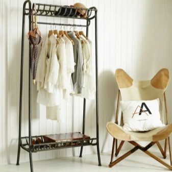 Pour un rangement confortable d'un grand nombre de vêtements, le plus acceptable est l'utilisation d'un rack avec cintres. Et pour placer un costume de pantalon, un design de costume spécialement conçu sera idéal. Le hanger-chair est pratique dans la chambre des enfants où habite l'étudiant. Parce qu'il est pratique de ranger un costume d'école sur un tel design. Le cintre sur pied offre la possibilité d'accrocher certaines choses sur les cintres et d'en mettre certaines dans des boîtes spéciales situées au bas du produit.