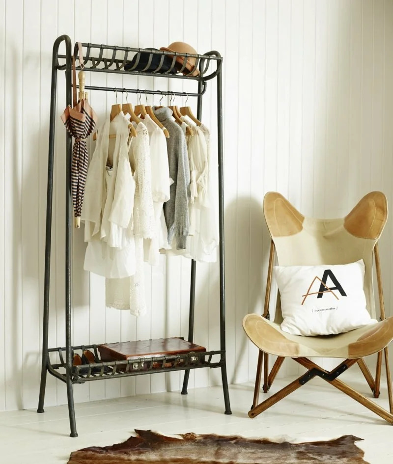 S'il n'est pas possible de placer une grande armoire dans la chambre pour ranger tous les vêtements, un cintre au sol avec une solution de style appropriée et le design le plus pratique sera un excellent moyen de sortir de la situation.
