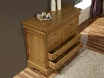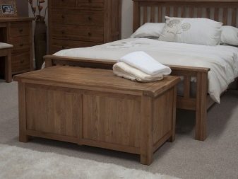 Les petits modèles sont équipés de roulettes pour faciliter les déplacements. Si vous avez besoin de ranger une couverture d'hiver, des oreillers pour les invités ou une grande couverture, vous devez alors choisir un modèle de plus grande capacité, adapté en largeur et en profondeur. Il convient de noter que dans une petite pièce, une telle armoire semble encombrante et inappropriée. Il convient mieux à une pièce spacieuse.
