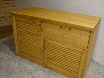 L'armoire avec une porte battante est facile à utiliser. Une telle porte est souvent située en haut et des tiroirs sont généralement fabriqués en bas pour ranger de petits objets. Le grand compartiment à linge vous permet d'y ranger votre couverture d'hiver ou vos oreillers. Ces modèles sont parfois réalisés avec un couvercle supérieur ouvrant et placés au pied du lit.