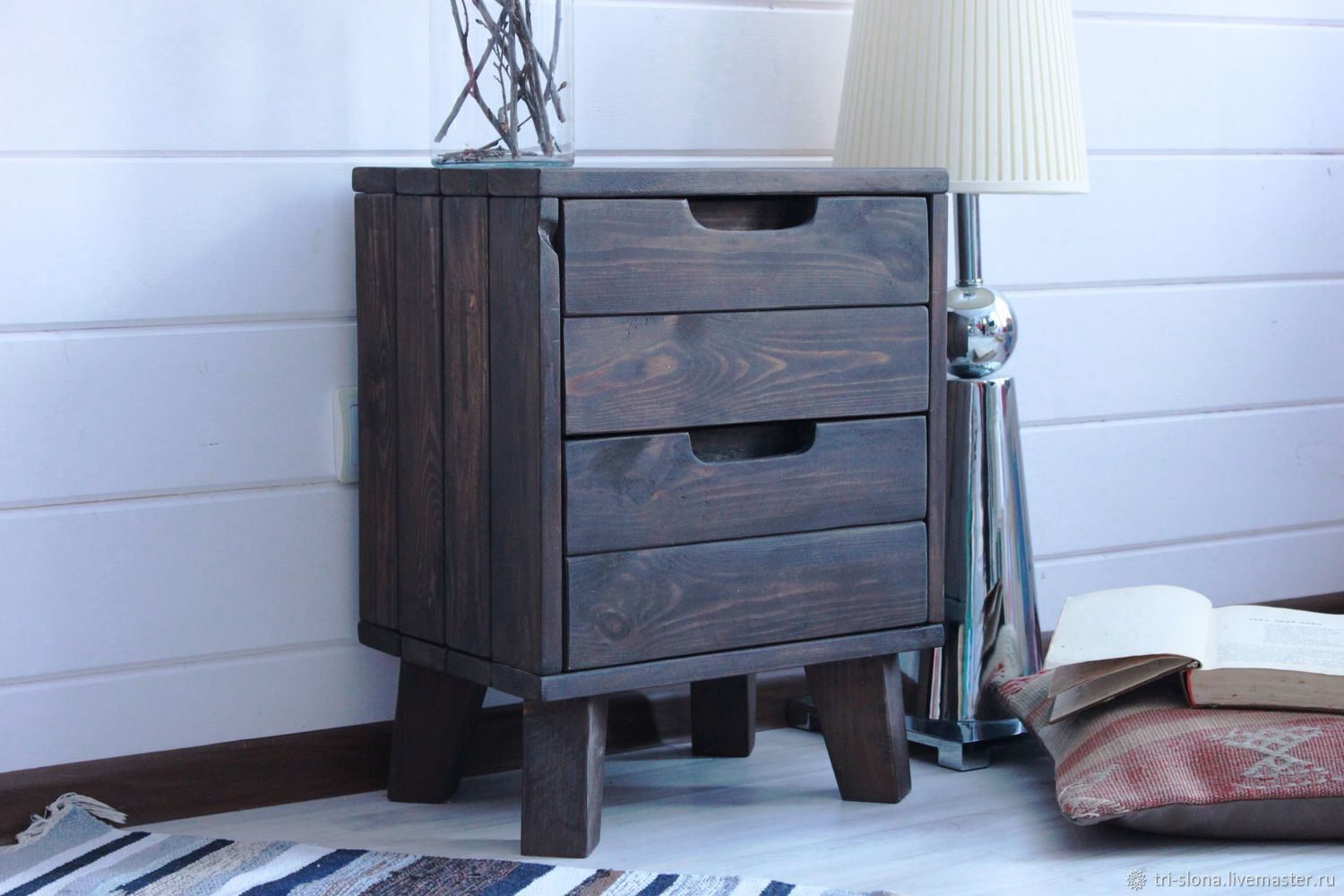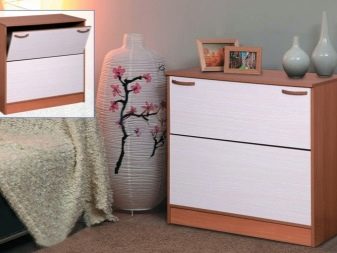 Adaptée avec compétence à l'intérieur, la table de chevet ne prend pas beaucoup de place dans la chambre et économise de l'espace dans le placard. Il est pratique pour ranger la literie, les couvertures, les vêtements de nuit. Une bonne solution serait d'acheter de tels meubles dans une pièce avec un lit ou un canapé transformable.