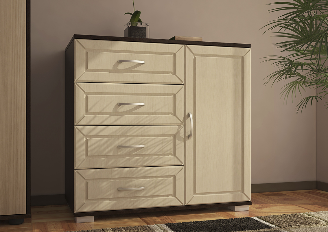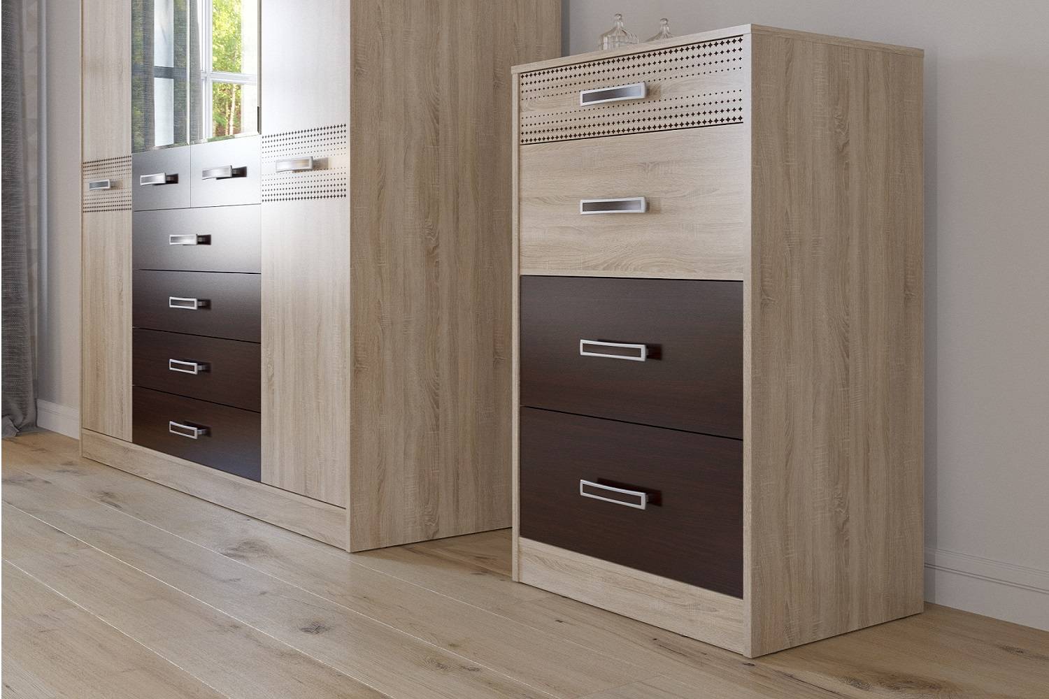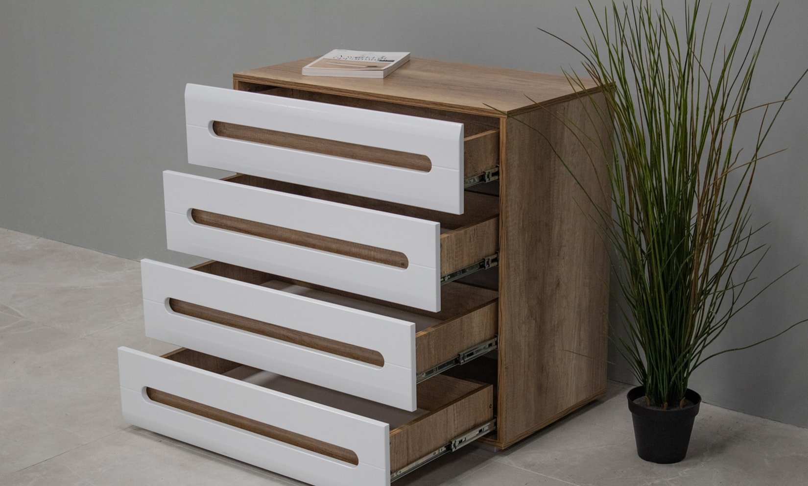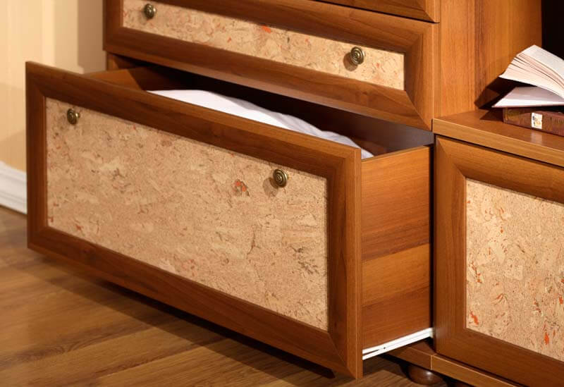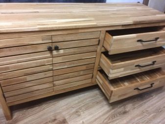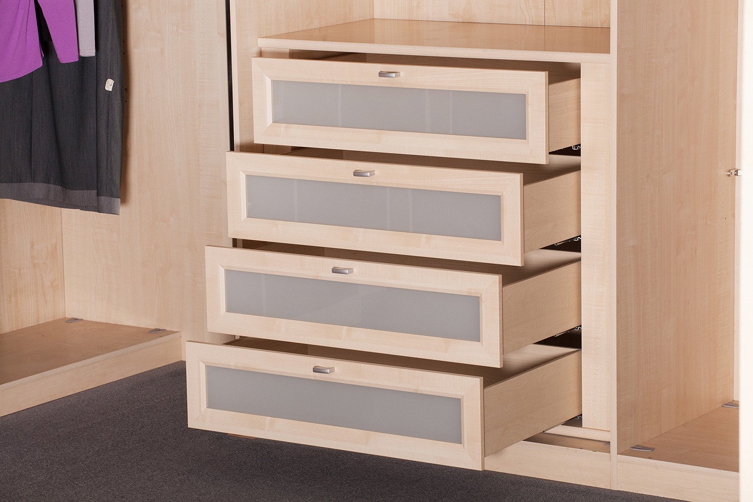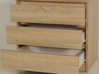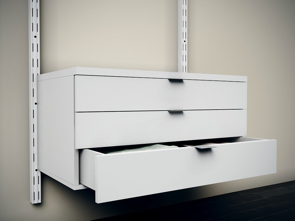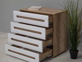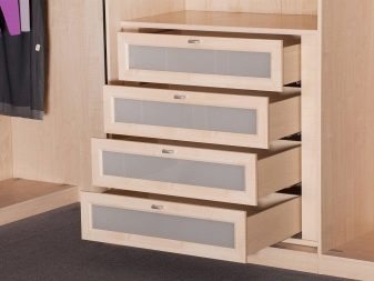 Ces armoires ressemblent à une commode à deux ou trois tiroirs. Ils peuvent être divisés en petits compartiments pour les sous-vêtements. Pour leur fixation, des guides à billes ou à rouleaux sont utilisés.