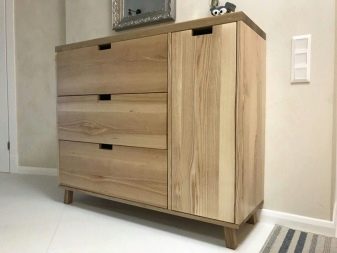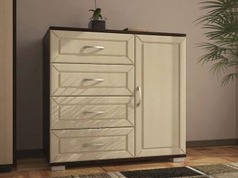 Pour ranger de petits textiles, une petite armoire convient, qui ne prend pas beaucoup de place. Cela peut être avec des portes battantes et des tiroirs. Dans les produits avec des boîtes, le linge, les bas, les chaussettes, ainsi que les petites serviettes et les serviettes sont soigneusement placés. En outre, les boîtes peuvent être utilisées à d'autres fins et y mettre des cosmétiques et de petits articles ménagers.