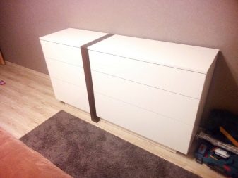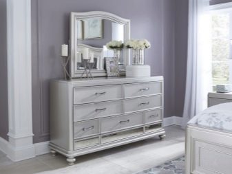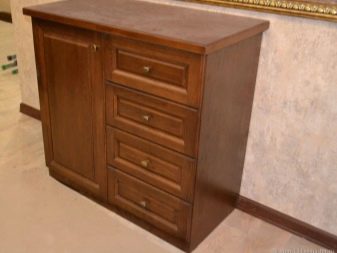 La lingerie peut être sur pieds de meubles décoratifs ou avec une base fermée. Le produit sur pieds tiendra solidement même sur un sol pas très plat, car ils sont facilement réglables en hauteur. La poussière s'accumule sous ces meubles, qui doivent être essuyés régulièrement. La poussière n'est pas visible derrière le socle fermé, mais pour l'enlever, vous devez retirer la barre à chaque fois.Dans le socle, des tiroirs supplémentaires de petites tailles sont parfois aménagés pour divers petits objets.