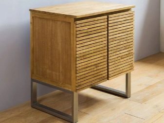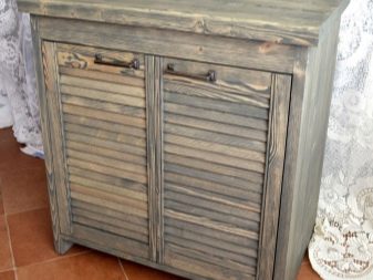 Certains modèles à portes battantes sont équipés de paniers à linge. Ils se composent d'un compartiment et conviennent au stockage d'objets encombrants. En outre, des versions résistantes à l'humidité de ces tables de chevet sont placées dans la salle de bain près de la machine à laver ou sous l'évier, et un panier amovible est utilisé pour le linge sale.