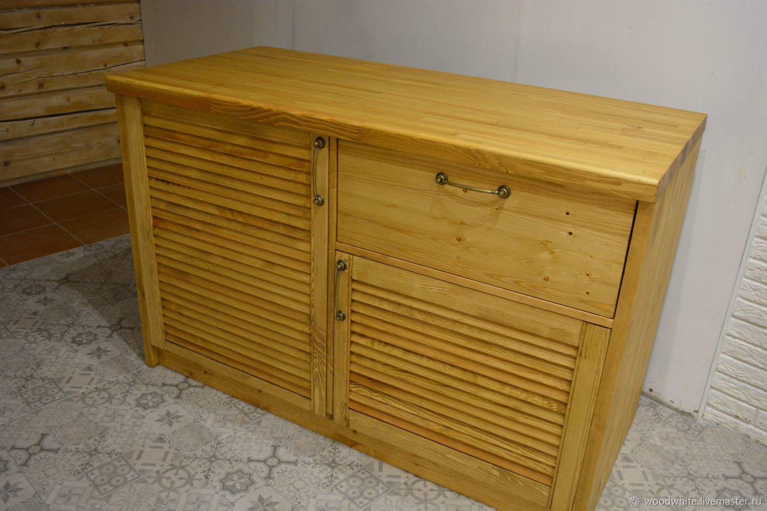 Une armoire à linge en bois naturel convient bien à un intérieur de style classique, scandinave ou écolo, ainsi que dans un style campagnard. De tels meubles sont chers, mais ils ont l'air respectables et dureront de nombreuses années. Pour sa fabrication, des essences précieuses sont utilisées - chêne, pin, frêne, noyer, cèdre. De plus, le bois massif est un matériau hautement écologique, sans impuretés nocives.