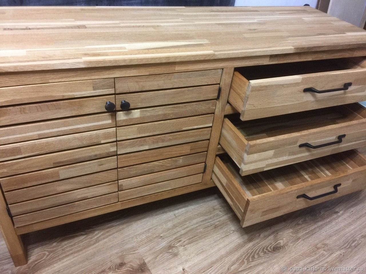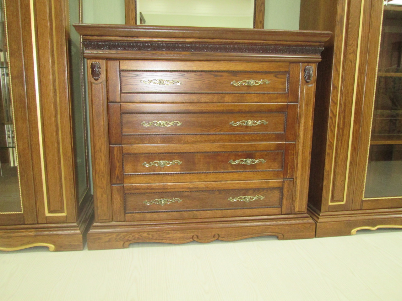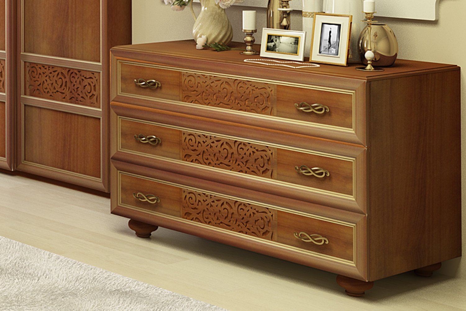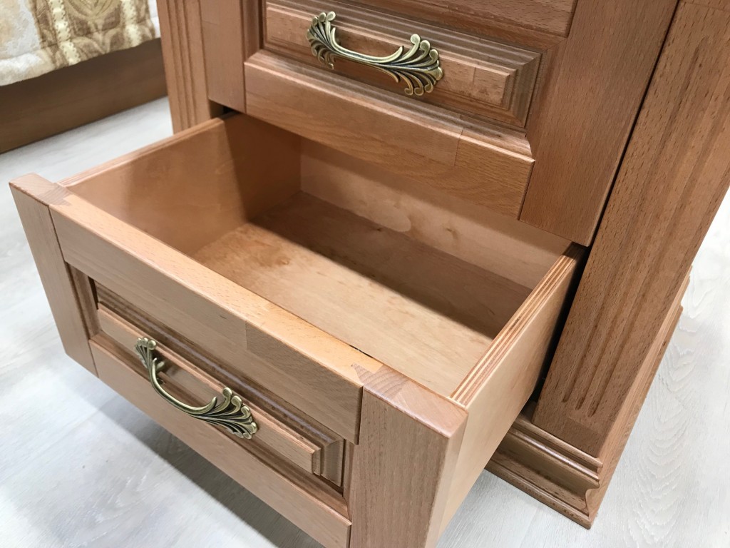 Le bois est moins résistant à l'humidité que le MDF. L'humidité intérieure ne doit pas dépasser 60 pour cent. Ce modèle ne convient que pour la chambre à coucher. Un aspect décoratif est donné à la façade à l'aide du brossage et de la sculpture.