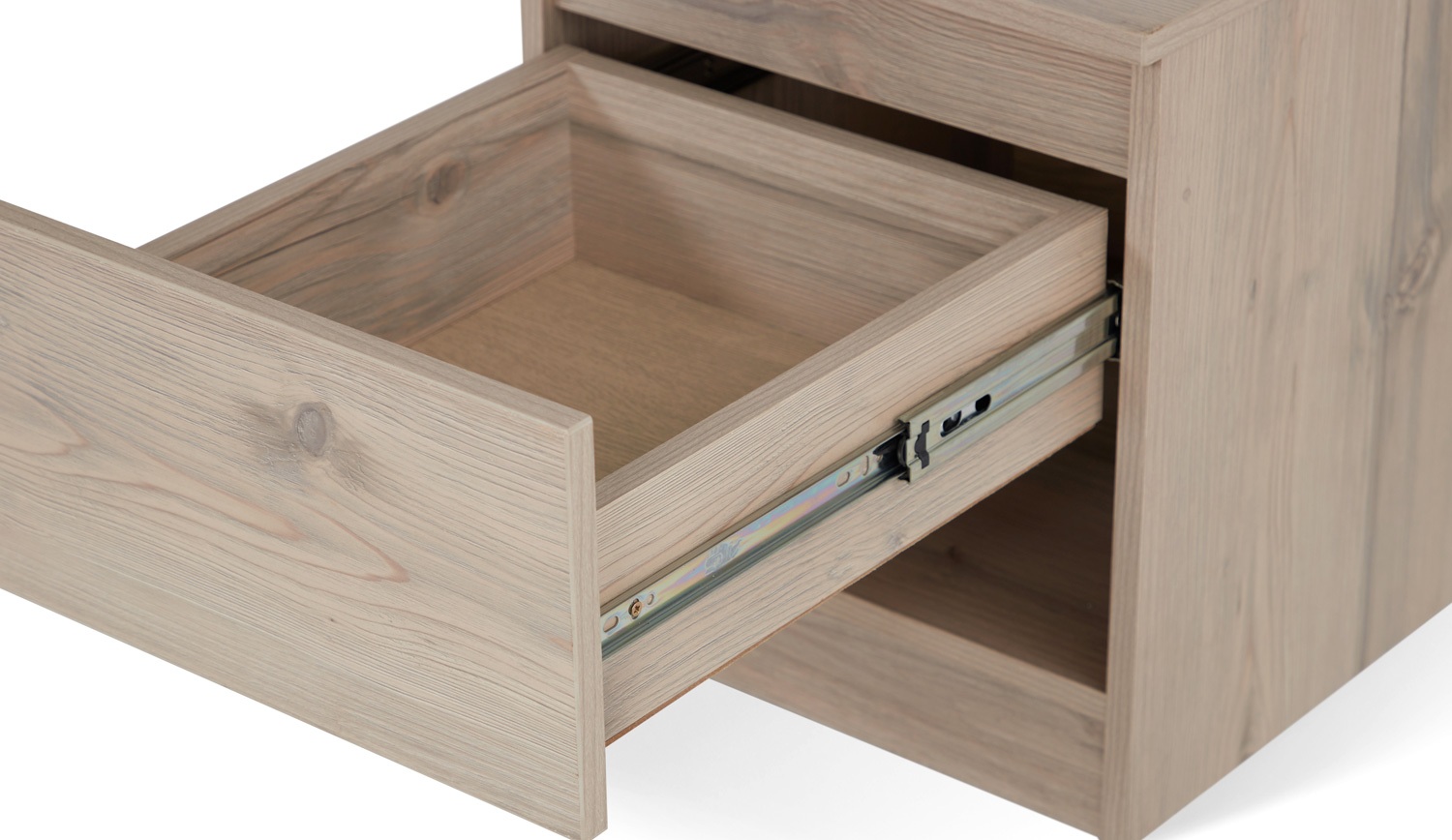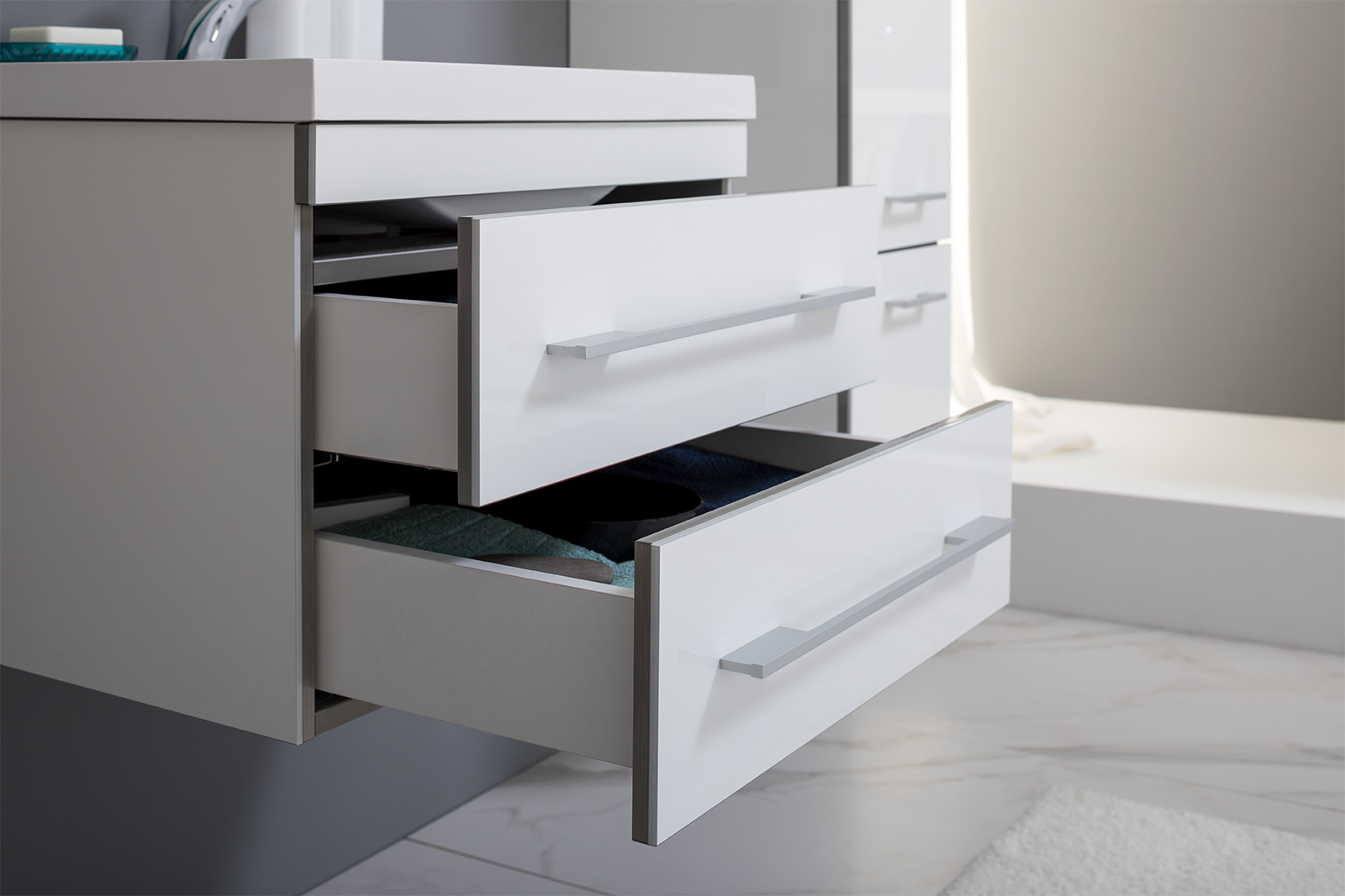 Les guides à billes peuvent supporter de lourdes charges, ce qui permet de placer non seulement des textiles légers dans la boîte, mais également des objets lourds et volumineux. Le tiroir s'ouvre complètement et silencieusement.
