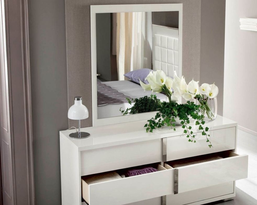 Si vous accrochez un miroir sur le trottoir et faites un rétro-éclairage, il peut remplacer la coiffeuse. Pour rendre le produit pratique à utiliser, lors de l'installation, tenez compte de la présence d'espace libre autour. Ceci est nécessaire pour l'ouverture complète des portes et des tiroirs. Les portes doivent s'ouvrir à 90 degrés et les tiroirs doivent être complètement sortis. Seulement dans ce cas, le produit sera confortable et fonctionnel.