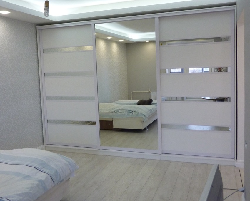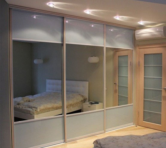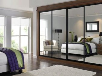 En ce qui concerne la conception des armoires, le rôle principal est joué par l'apparence de la façade, c'est-à-dire la porte coulissante. Le plus souvent, les modèles avec miroir sont préférés pour la chambre. C'est pratique et esthétique, le miroir ajoute du volume et de l'espace au visuel de la pièce, remplissant la pièce de lumière.