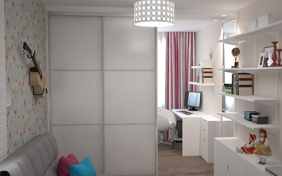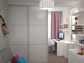 - Zonage et division de la pièce. À l'aide d'un tel meuble, vous pouvez séparer un lieu de sommeil ou de travail. L'un des panneaux rétractables peut devenir un paravent. Après tout, les portes peuvent être situées des deux côtés de l'armoire afin que les objets à l'intérieur soient accessibles simultanément à partir de différentes zones.