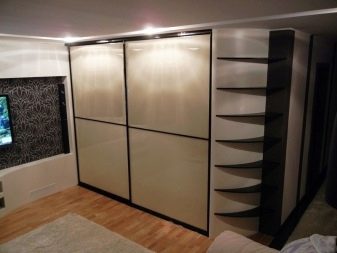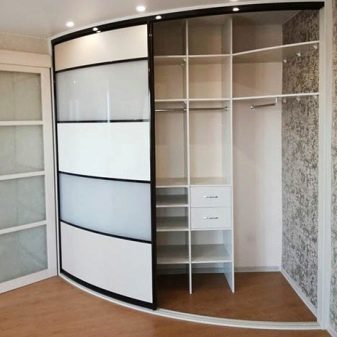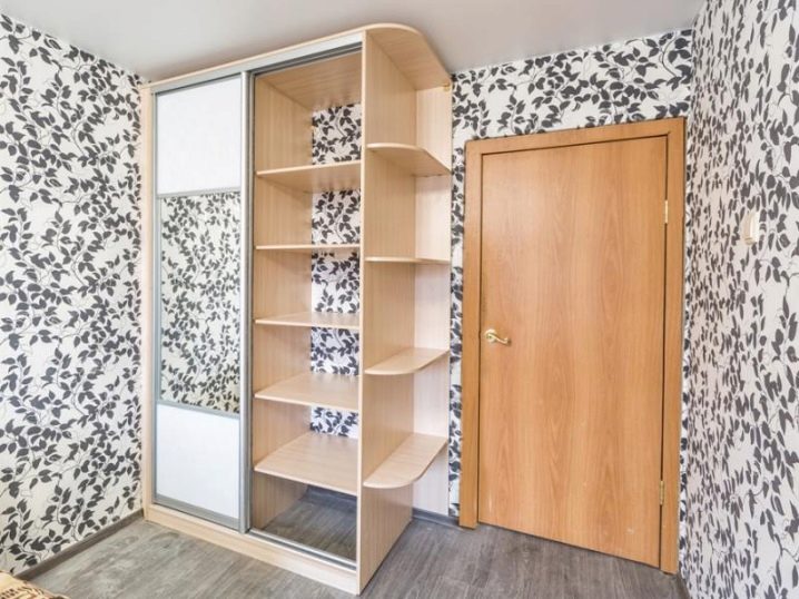 L'une des moitiés peut être complètement ouverte, comme une étagère pour des fleurs, des livres ou même avoir un plateau de table et se transformer en un lieu de travail à part entière. La seconde est réservée au rangement des vêtements et autres choses. Aussi, la première partie peut être complètement inscrite dans le mur, et la seconde peut avoir un corps et clôturer l'aire de loisirs.