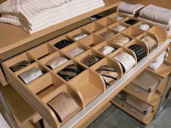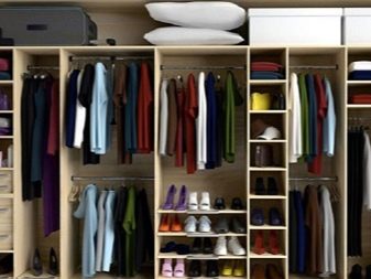 - De nombreuses armoires ont des tiroirs en bas. Sous le compartiment à barres hautes, il y a souvent un porte-chaussures ou des barres transversales pour un rangement compact des chaussures à talons.