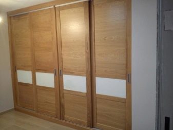 En fonction du nombre de membres du ménage - et, par conséquent, du poids des objets qui seront rangés dans le placard - choisissez un matériau adapté et durable pour la fabrication de meubles. Les petites armoires encastrées dans le mur ont fière allure même à partir de panneaux de particules minces. Il est préférable de commander la coque et les structures massives en MDF ou en bois massif, selon la longueur et la largeur de la plus grande partie.