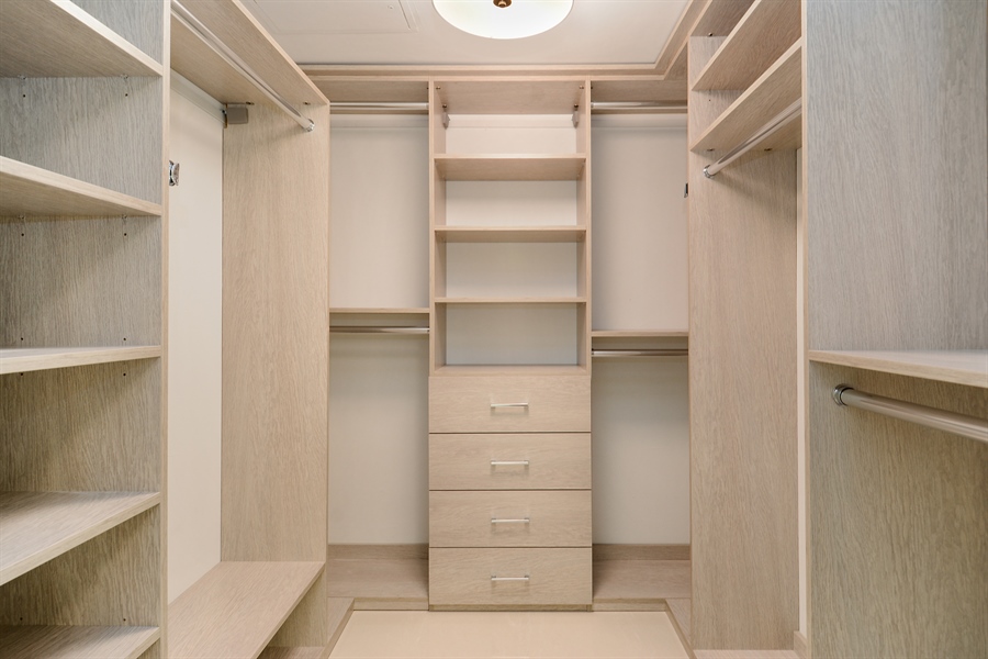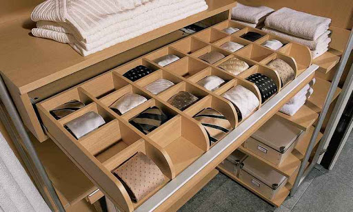 Lorsque vous réalisez une garde-robe sur commande, vous pouvez prendre en compte tous vos caprices. Par exemple, l'intérieur peut cacher un tiroir bas avec des sections pour ranger les cravates. Une femme peut consacrer une des sections à ses bijoux, en lui fournissant un éclairage, un miroir et des compartiments pour les contenants à bijoux.