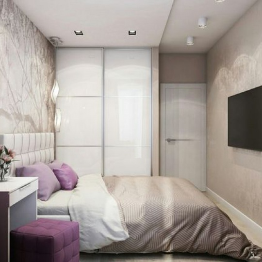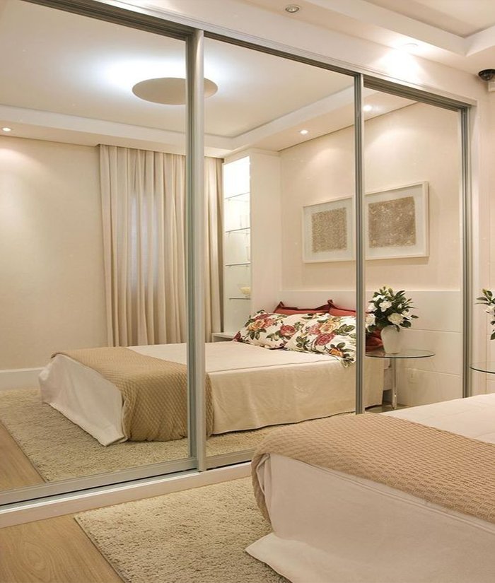 Si vous voulez des meubles avec une surface en miroir, faites attention à l'emplacement du lit. Beaucoup de gens se sentent mal à l'aise de se refléter dans le miroir pendant leur sommeil.