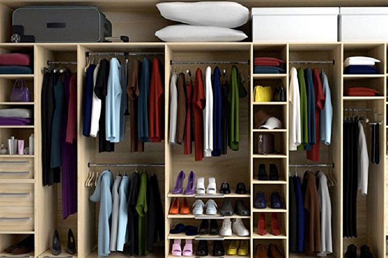 Les règles de base impliquent la commodité et le confort. Le placard de la chambre doit avoir un compartiment de rangement pour la literie s'il n'y a pas d'autre commode ou tiroir dans le lit.