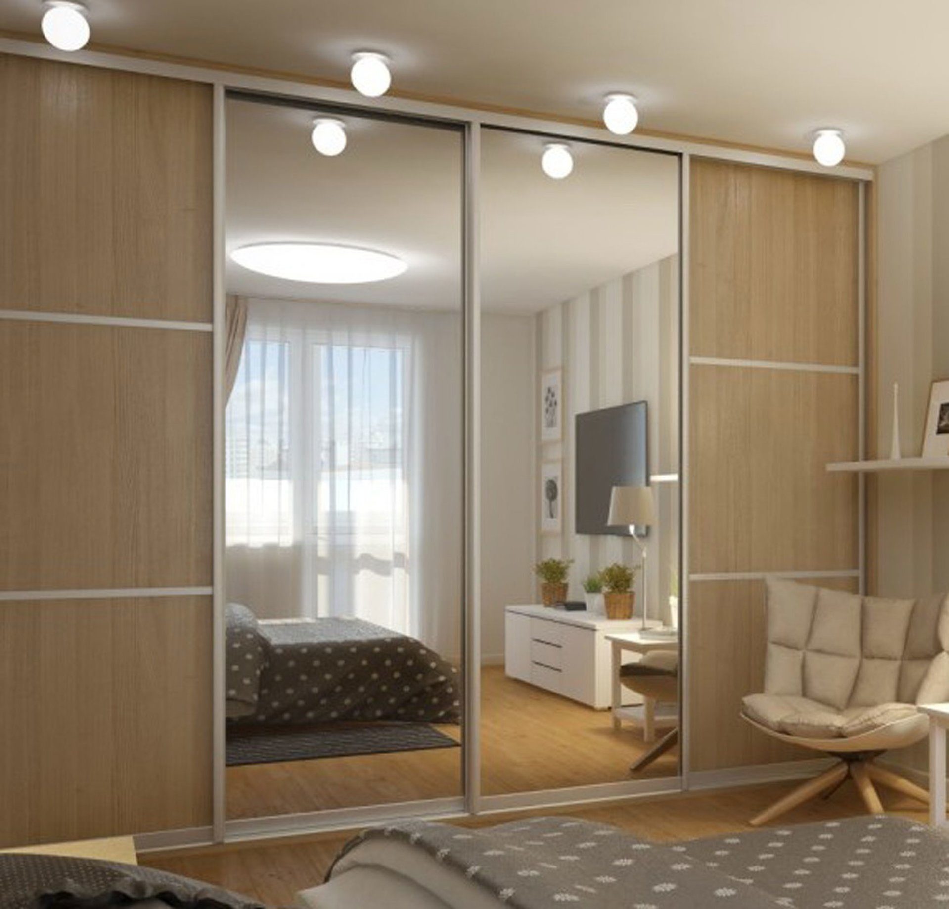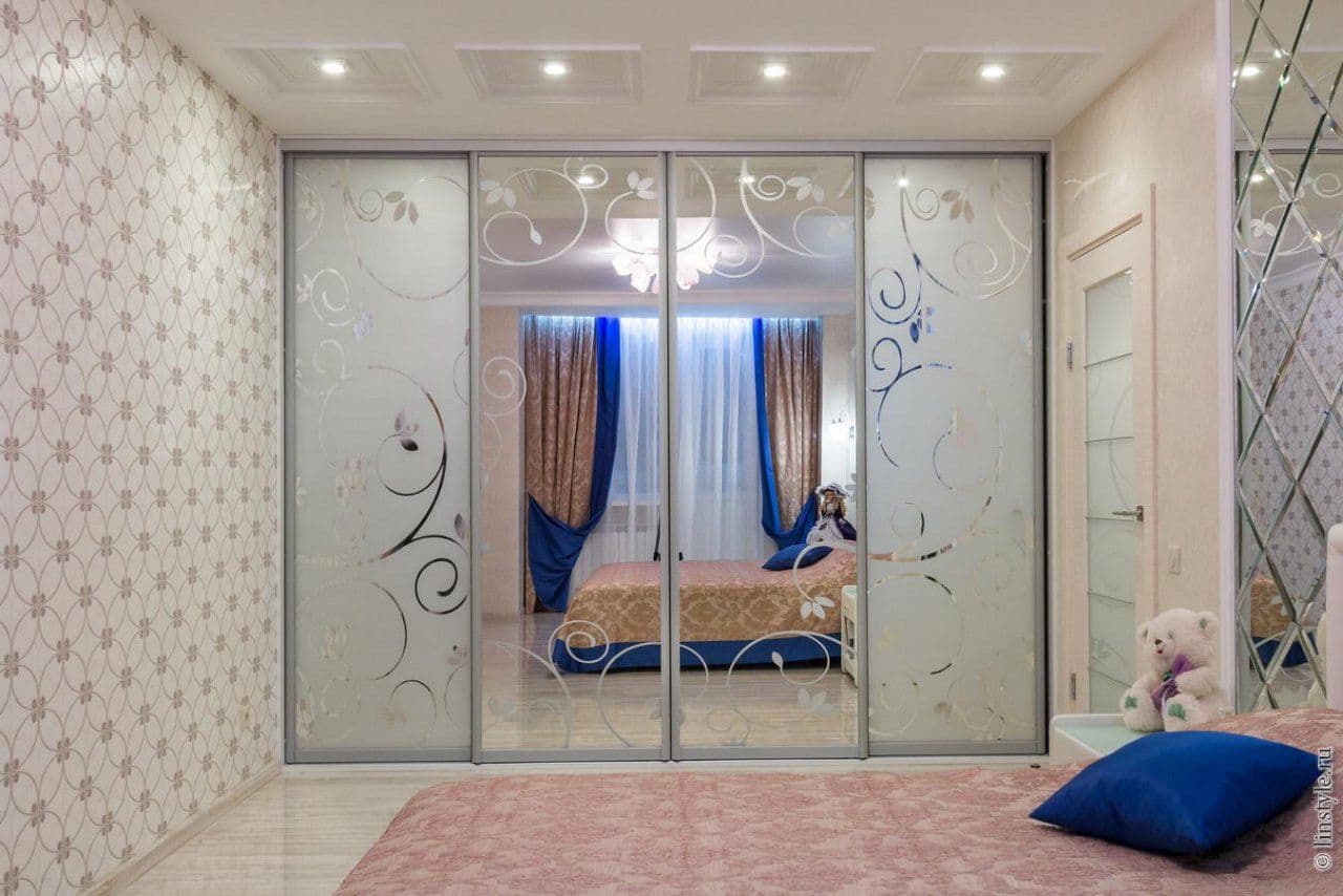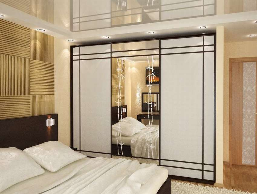 Les armoires modernes peuvent être mises en miroir non seulement dans le sens de recouvrir le panneau coulissant, mais également en termes de décoration. Par exemple, le dessin d'un meuble peut répéter le mur opposé : avoir le même imprimé que sur le papier peint, ou une composition située de manière symétrique.