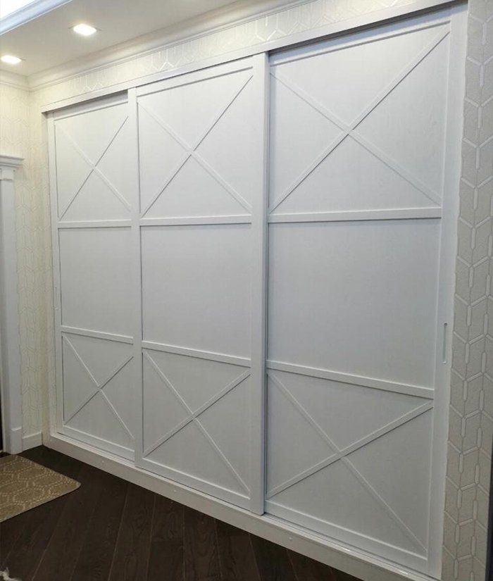 Par le type de fixation des portes, elles sont suspendues et avec un support inférieur. Pour l'accrochage, il est conseillé de choisir des poignées à mortaise.Si vous oubliez accidentellement, ou si vous glissez et tirez sur la poignée en saillie, la lame peut s'incliner et même sauter hors du rail, et ces pièces sont assez lourdes. Les conséquences d'une épaisse feuille de MDF ou d'aggloméré tombant sur une personne sont tristes.