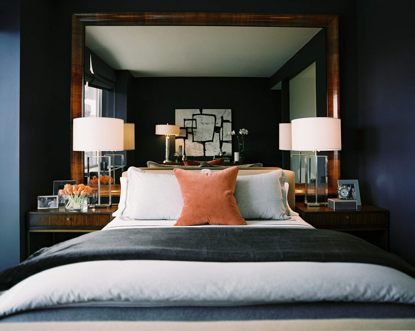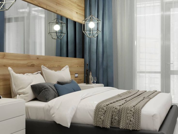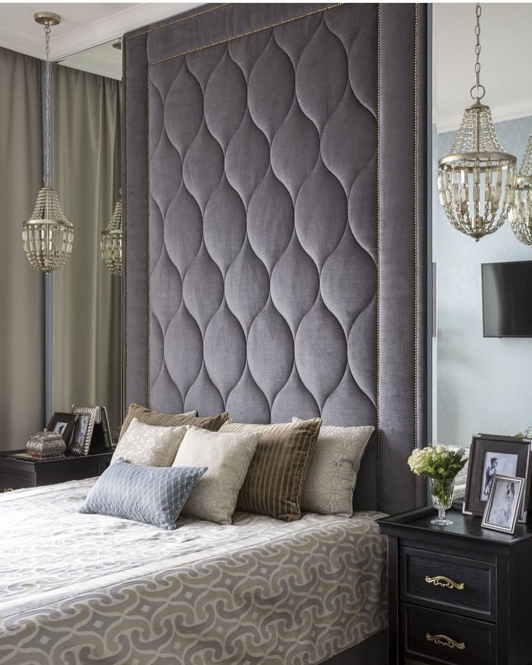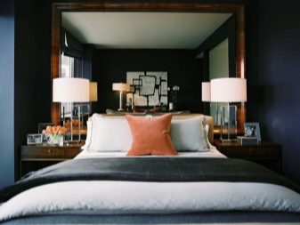 Aujourd'hui, vous pouvez combiner une variété de textures dans des meubles et différents matériaux. Une technique intéressante pour installer un miroir consiste à l'installer directement derrière le lit.