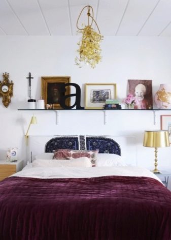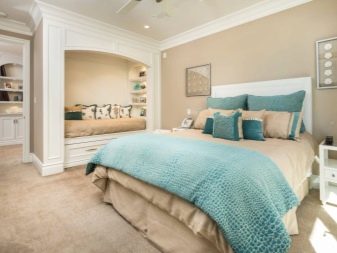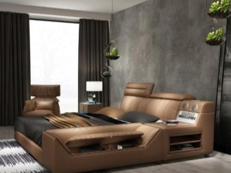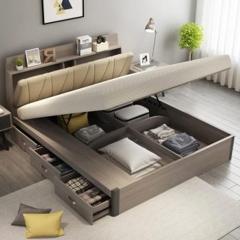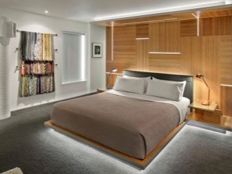 - Quand cela vient à lit, alors il devrait avoir plusieurs compartiments pour un stockage supplémentaire. Une tête de lit standard peut être manquante ; à la place, des panneaux de plafond souples spéciaux peuvent être installés sur le mur.