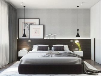 - Nous vous recommandons de faire attention au design de la chambre, qui combine organiquement les couleurs noir, gris et blanc... Les panneaux muraux modernes d'une texture mate, peints en couleur graphite, méritent une grande attention, tandis que des textiles élégants et un éclairage moderne rendent l'intérieur à la mode.