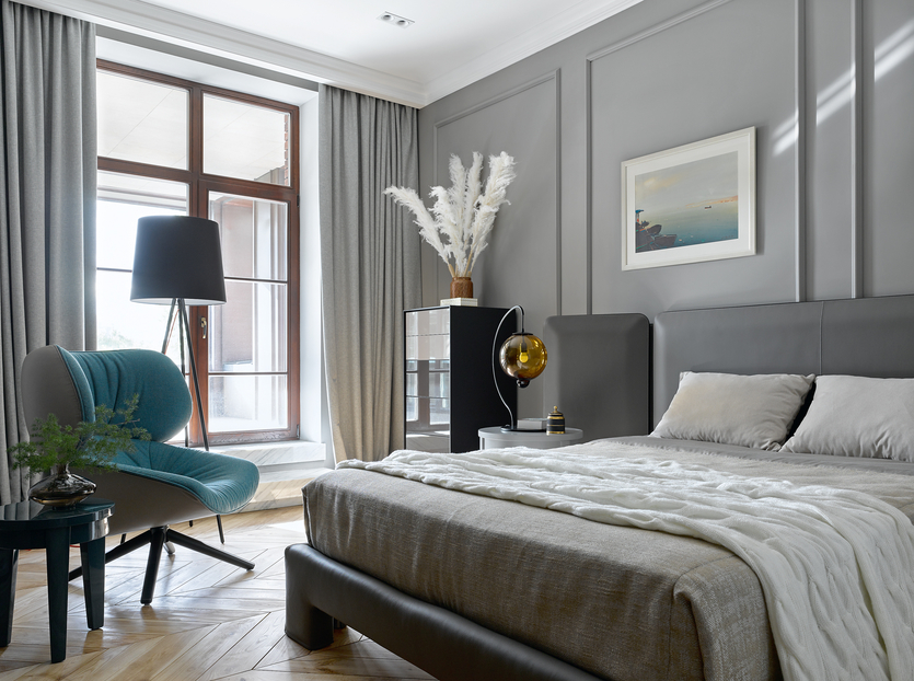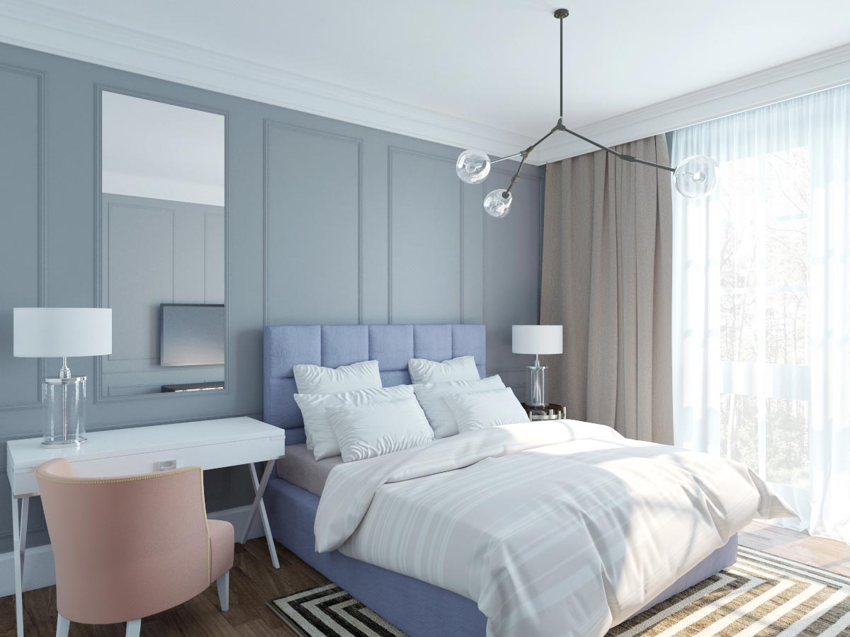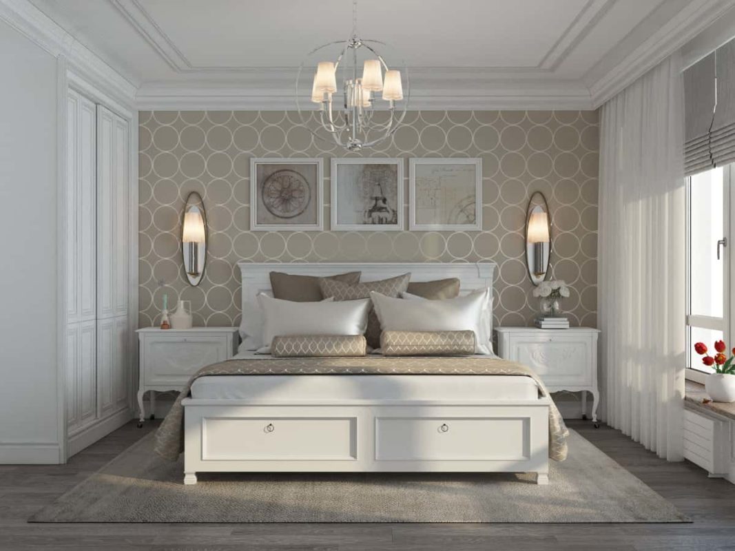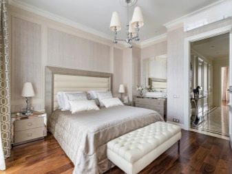 - Néoclassique... Dans la tendance 2021, des chambres décorées dans un style néoclassique. La palette de nuances recommandée comprend toutes les nuances claires non seulement dans les meubles, mais aussi dans la décoration; la préférence est donnée aux couleurs pastel. Les nuances d'or et d'argent peuvent être utilisées pour créer des accents. Il peut y avoir des moulures sur les murs. En ce qui concerne les textiles, on utilise généralement des tissus coûteux et naturels, très souvent de la soie ou du velours, à partir desquels sont fabriqués les rideaux, les couvre-lits et les oreillers décoratifs.