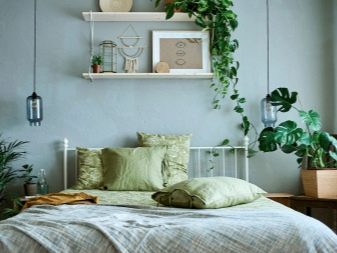 - Il convient de souligner que lors de l'aménagement de l'intérieur de la chambre les plantes artificielles de mauvaise qualité ne doivent pas être utilisées, ils ne décoreront pas l'intérieur. Si vous souhaitez diversifier l'intérieur avec de la verdure, il est préférable de choisir un aménagement paysager coûteux ou des plantes artificielles de haute qualité.