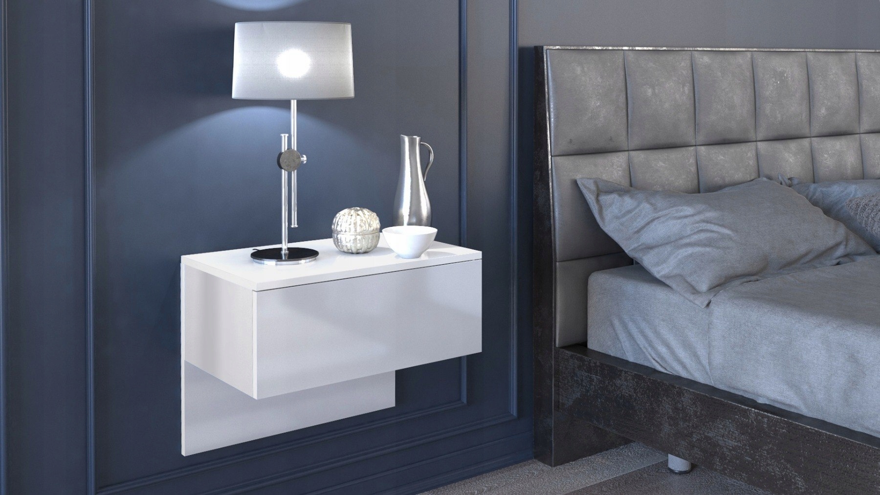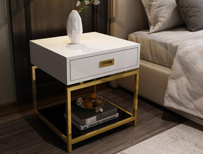 - Suspendu tables de chevet sans poignées, ainsi que des options à la mode avec des pieds en métal plaqué or.