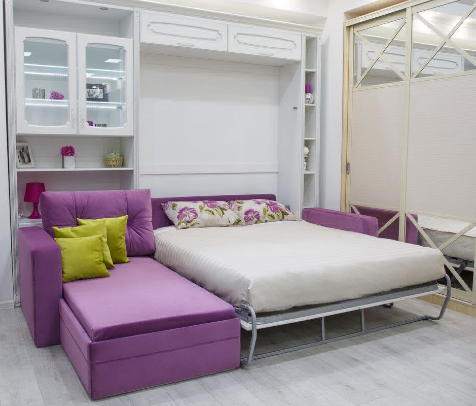 Pour les petites chambres ou pour les studios, les experts recommandent d'installer des canapés transformants modernes, qui peuvent parfaitement compléter n'importe quel intérieur et, si nécessaire, économiser de l'espace.