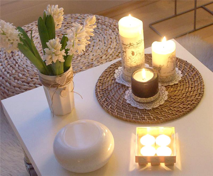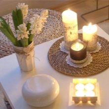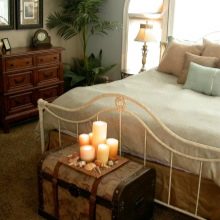 - Des bougies parfumées et des bougeoirs peuvent être utilisés dans la chambre. Mais il vaut mieux refuser les livres et les étagères en décoration d'intérieur.